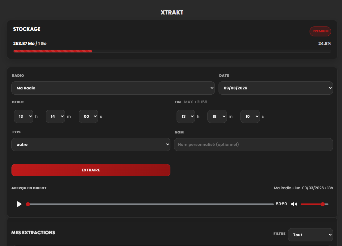 Créez vos extraits audio, retouchez (avec Komogo Studio), écoutez et téléchargez les pour les conserver avec vous.