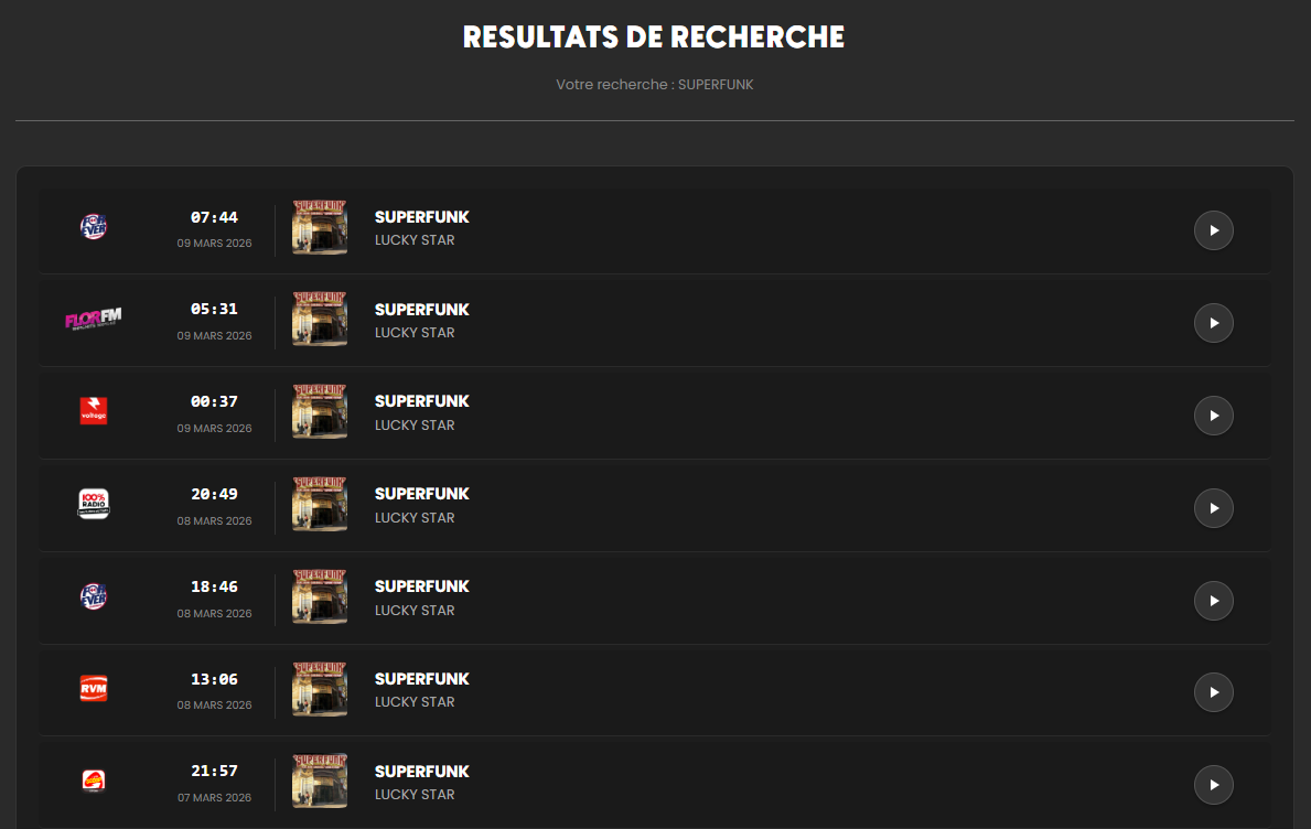 Consultez en temps réel la liste des titres diffusés sur + de 50 radios françaises.